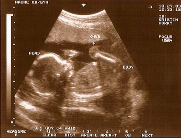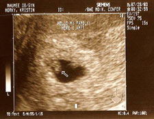 I had the ideal pregnancy. No morning sickness. I felt wonderful. I started to show early so I could easily show off the fact that I was pregnant. Every doctor’s appointment went well and every test and examine showed a healthy baby. I simply loved being pregnant. At 38 weeks my water bag broke and I delivered a healthy 8lb. 2 oz. baby boy. My fairy tale was coming true. When Spencer was one year old I stopped nursing and we conceived our second child the next month. The minute I saw the pregnancy test turn positive I fell in love with our baby.Although more tired the second time around, I still loved being pregnant. My pregnancy started off very normal. During the beginning of my second trimester I had an episode of bleeding. After a thorough ultrasound my doctor said everything looked normal. I was sent home with mild restrictions. Two months later I again had an episode of bleeding. The ultrasound showed that everything again was normal. My placenta was where it should be. My cervix was normal. There were no tears in the water bag. After a month of mild restrictions, I carried on with a normal pregnancy. At 35 weeks my water bag broke and I delivered a 6 lb. 3 oz. baby boy. Zackary’s lungs were fully developed and he came home with me 2 days later. Our family was becoming complete. It was the desire of my heart to have a third baby, although my husband was less sure. I had been praying that the Lord would make the decision clear for us. During the month of July, 2003 I was feeling a little nauseous here and there and especially after meals. I had a yearly check up scheduled for July 24th with my ObGyn so I decided I should take a pregnancy test before I went. At this point I was still nursing Zack who was 11 months old and Spencer was now 2 ½. The minute I saw the pregnancy test turn positive I fell in love with our baby. I couldn’t stop smiling from ear to ear. The Lord had answered my prayers. My doctor ordered a blood test to confirm the news and the lab said it was definite. That night I shared the news with Chad. Although a little surprised, I saw the smile come across his lips. Another child to love and adore. On Monday, July 28th I had an ultrasound to determine a due date. The ultrasound showed that I was six weeks along and that our newest addition would be due on March 21st, 2004. This first picture of our precious baby was taken at that appointment.The mild nauseousness continued on through the first trimester of my pregnancy. I had no sign of an upset stomach with the boys, so I thought maybe this could be a girl. Neither Chad or I cared whether it be a boy or a girl. We just wanted a healthy, full term baby. That was our goal since Zack had been 5 weeks early. I had an episode of bleeding towards the end of August. This was still in my first trimester. The doctor’s office ordered another ultrasound for Wednesday, August 27th. The ultrasound did not show any problems. Cervix, placenta, and water bag all appeared normal. Initially we felt comfortable with these results since the same thing happened during my pregnancy with Zack and the outcome had been a healthy baby. This ultrasound confirmed that I was indeed due March 21st. Within just 4 short weeks since my last ultrasound, our baby was starting to look more and more like a little person.As my pregnancy progressed I started to feel uneasy. I assumed all along that my water bag would break early since it had with my first two pregnancies and I knew statistically this baby would probably come early since both boys had. I just started praying and asking for prayers for a healthy, close to full term baby. I felt my precious baby moving inside me at 14 weeks. I loved the way life felt within my womb. The small flutters and gentle kicks in the beginning were reminders of what was to come months down the road. I could definitely tell that this was my third pregnancy. My belly popped right out and I looked further along than I really was. This pregnancy would most likely be my last, so I knew I wanted to enjoy it. We had our regular 20 week ultrasound scheduled for Monday, October 27th. Chad took the morning off work and we headed to my doctor’s office. We not only wanted to find out that our baby was healthy, but to find out if we would be following in my mother and mother-in-law’s footsteps by having a third boy. The ultrasound revealed a very healthy, very active baby boy. Before the ultrasound tech could say anything out loud, Chad let out a loud WHOOP of joy. In his heart he was excited to have three boys to play with, wrestle with, and to raise. Three boys . . . three and under . . . we would be busy!We shared our joyous news with family and friends. No one was surprised to hear the Horky’s would have three boys. Everyone was very excited including Spencer and Zack. It was fun to watch Spencer’s reaction to my growing belly. He was so young when I was pregnant with Zack that he seemed to enjoy and understand this pregnancy a little more. I was able to borrow a Doppler used to listen to a baby’s heartbeat so Spencer and other family member’s were able to hear this life within me. Spencer loved it and would ask frequently when he would be able to hear it again. The first half of my pregnancy flew by and before I knew it I was in my 21st week and had taken no pictures of my growing belly. My sister snapped some pictures of me which I am so grateful to have. At this point I was pretty tired. Ninth month tired! I attributed it to having two toddlers at home. A quick cat nap at my house was not uncommon while my boys slept.On Monday, November 17th, 2004 I went to bed exhausted as usual. I was only 2 days into my 22nd week of my pregnancy. I woke up at 1:30 am with the all to familiar feeling of a broken water bag. I woke Chad and we talked about what we should do. I felt calm in the beginning since I remembered from my experience with Zack that a woman could stay on bed rest in the hospital even after her w
