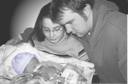 We returned at noon on Thursday, January 19, 2006, and the doctor met us and told us that the MRI showed no brain activity; that he was essentially brain dead. We had to choose to remove him from life support. My husband and I got down on our knees and prayed. The miracle was not to be found. We chose to let our friends and family come to say goodbye to him and then we would remove him. This still allowed God some time to show His miracle or a positive sign. Several people from church came and our family came and all had their chance to support us and say goodbye to Ethan. Both Renee and Alaina came too and brought with them a plaster mold to allow us to take a 3D molding of his hand and foot.